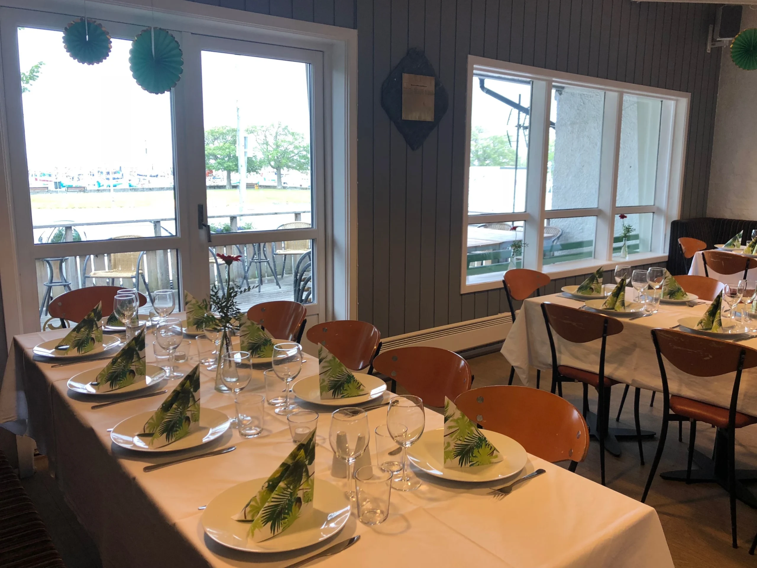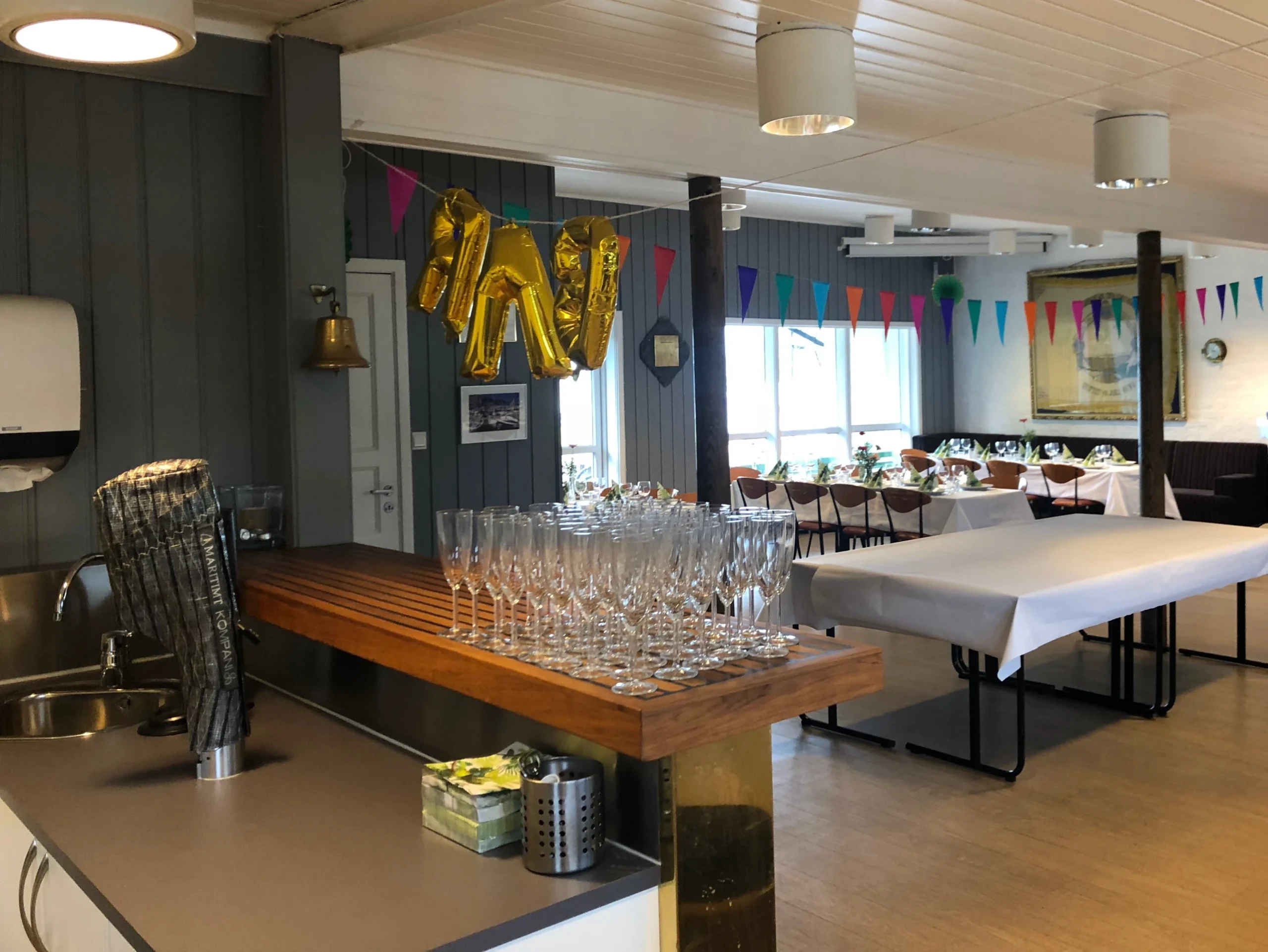 Oppvaskmaskinen er av storkjøkken-standard og tar unna skitne kopper og fat i en fei. Kaffetrakteren kan trakte opp til 15 liter i timen og det er rikelig med termokanner tilgjengelig. Foran huset er det en stor terrasse med kafébord og -stoler. Terrassen er delvis overbygd.